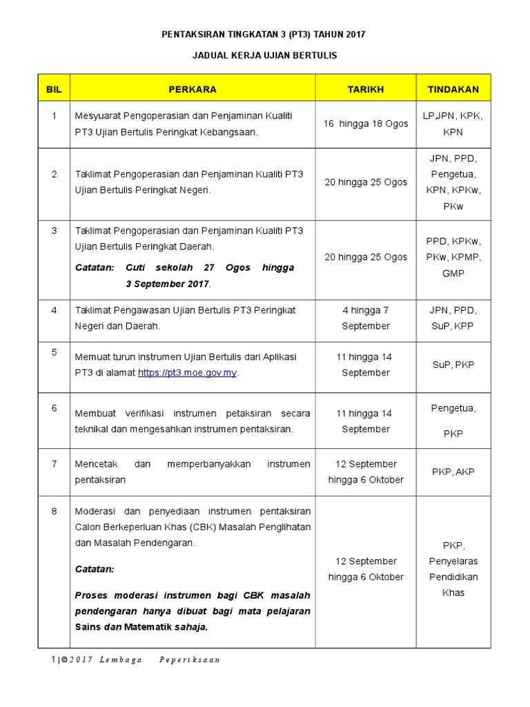 Kerja Kursus Pt3 2017 - Bahasa melayu (bm), bahasa inggeris, matematik, sains, pendidikan islam, sejarah, geografi.