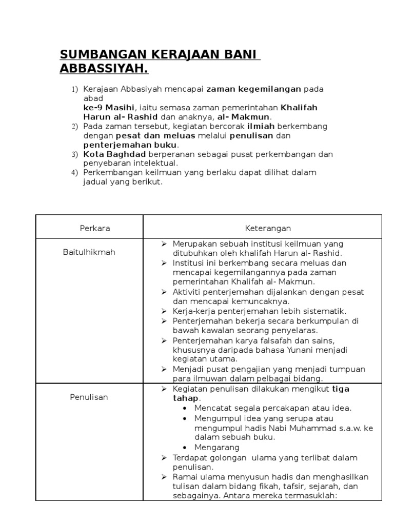 Related : Sumbangan Kerajaan Bani Abbasiyah - Formula sejarah kerajaan bani abbasiyah bab 6 ting 4..
