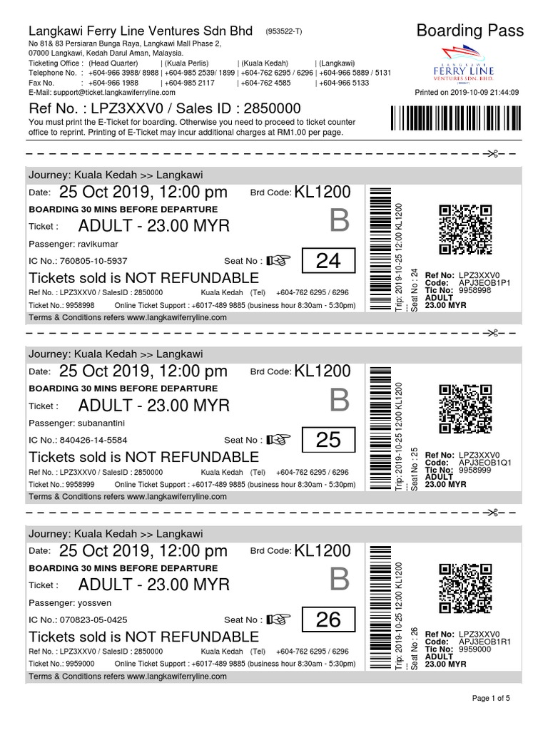 Tiket feri untuk kembali dari jeti kuah langkawi ke kuala perlis/kuala kedah boleh ditempah ( booking ) selepas tiba di langkawi.
