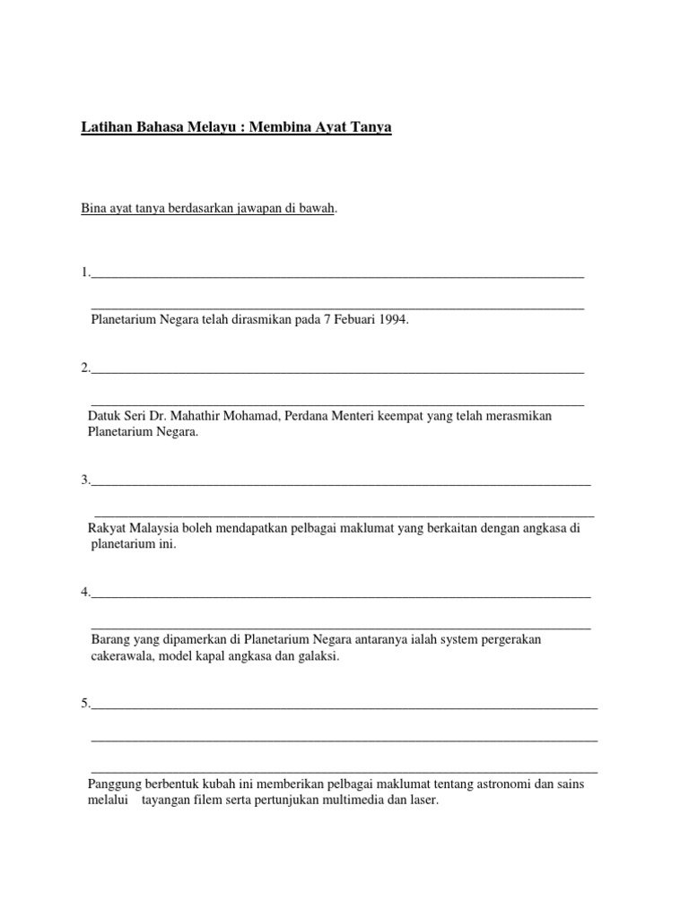 Apakah nama tempat ini ? Kata tanya bahasa melayu tahun 2 musim pkp beserta kuiz. Home pengajaran dan pembelajaran bahasa melayu latihan bahasa melayu tahun 2 (kata tanya). Persembahan silat itu berlangsung ? Untuk menanyakan sebab atau alasan.